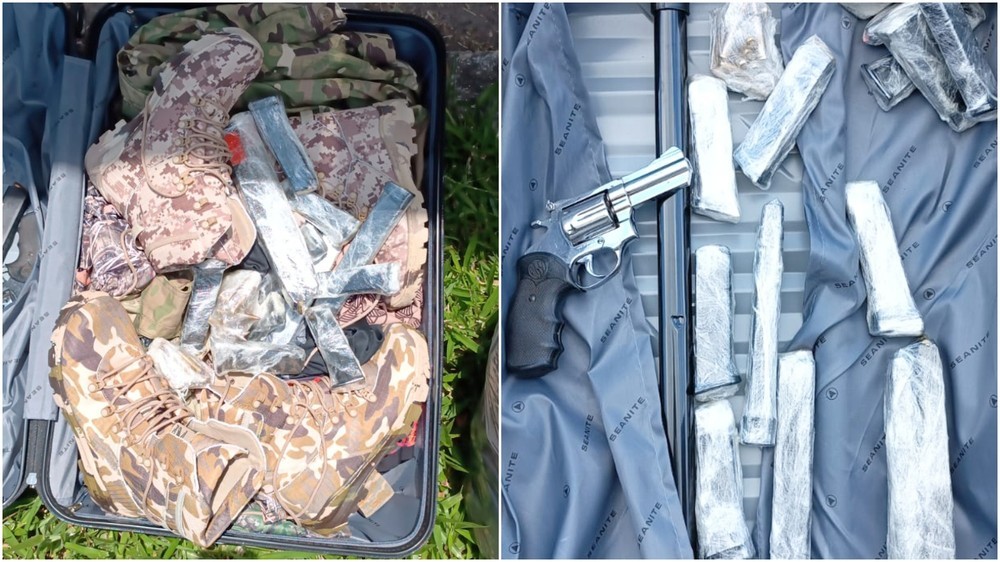Durante a abordagem, na BR-116, os agentes fizeram buscas no veículo e encontraram nas bagagens dos passageiros um revólver, 267 munições de pistolas e fuzis, 12 carregadores de armas, além de acessórios camuflados, como coturnos, calças, camisas, coletes, balaclavas e dois frascos contendo líquido assemelhado à "lança-perfume".
